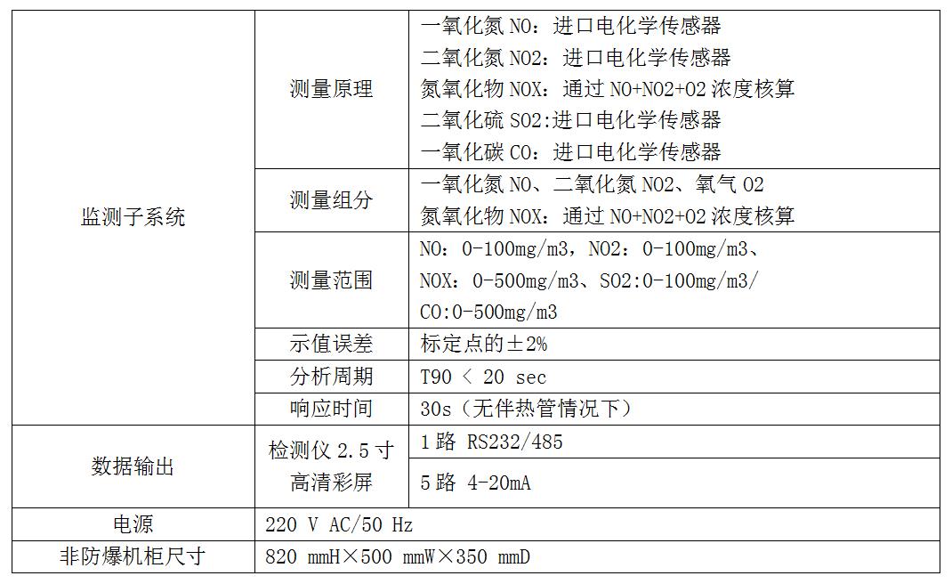 l 監(jiān)測機(jī)柜集成了預(yù)處理系統(tǒng)和分析儀并完成測量廢氣含量;
